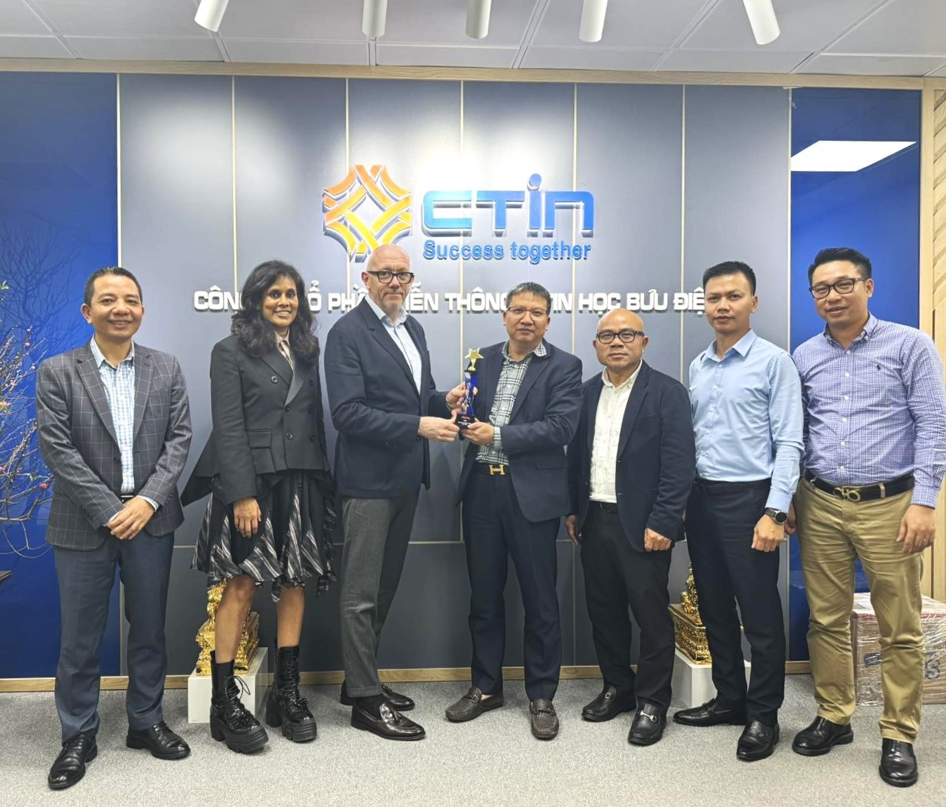 Trong buổi làm việc, CTIN đã vinh dự được trao tặng giải thưởng “Đối Tác của Năm” từ Đại diện Ciena – Ông Jamie Jefferies.  Đây không chỉ là một lời khen ngợi cho sự cam kết không ngừng nỗ lực của chúng ta mà còn là sự công nhận về chất lượng dịch vụ và đóng góp của các thành viên công ty trong suốt năm 2023 vừa qua.